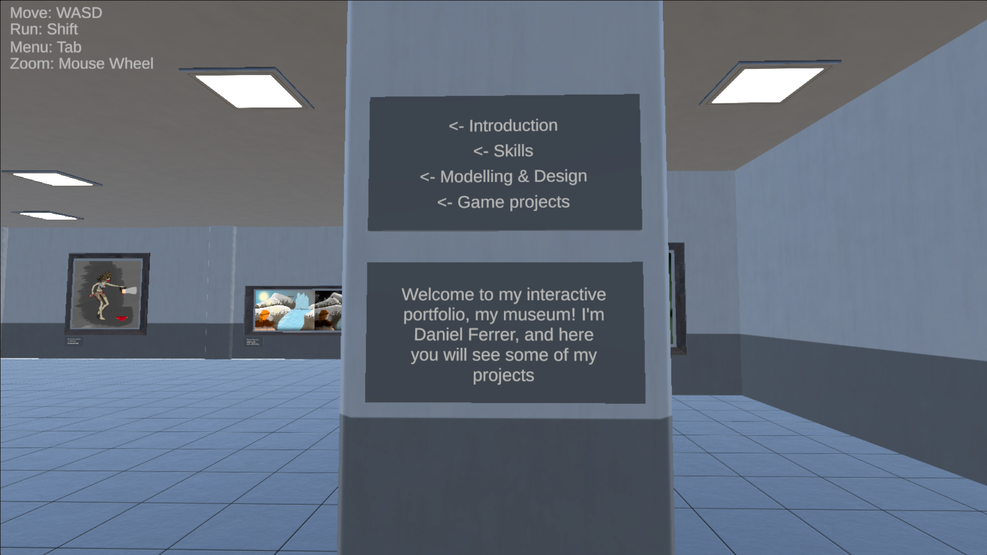 This mini walking-simulator is made as a personal interactive portfolio i decided to make as a museum experiencie, to show all my projects and work.